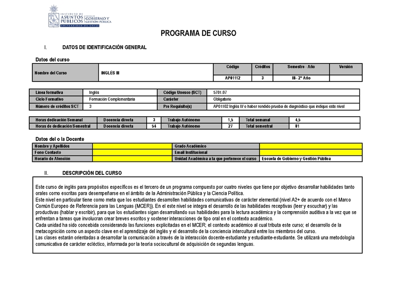 | Descripción | Profesora: Carol Johnson Contacto: carol.johnson@uchile.cl |