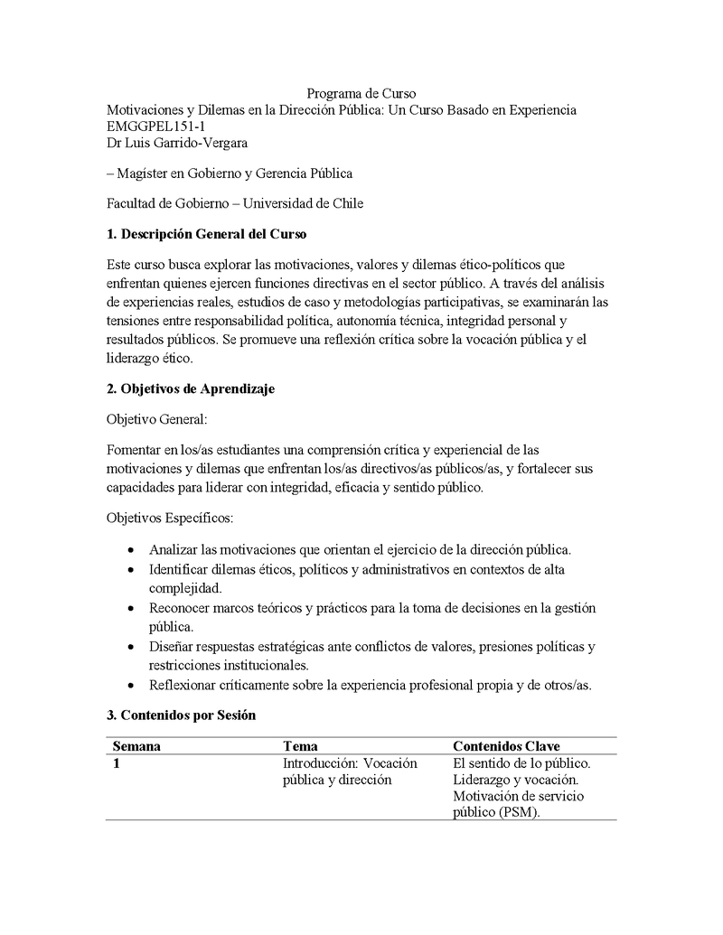 EMGGPEL151-1 Motivaciones y Dilemas en la Dirección Pública: Un Curso Basado en Experiencia 2025, Segundo Semestre