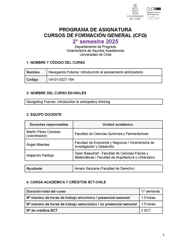VA-01-0327-164-1 Navegando Futuros: Introducción al pensamiento anticipatorio 2025, Segundo Semestre