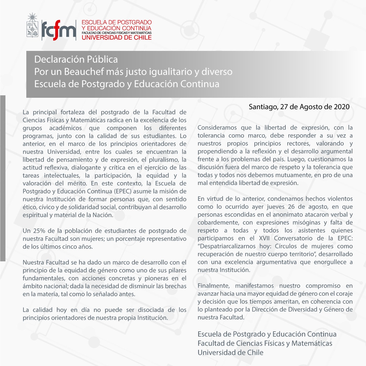 Declaración pública por un Beauchef más justo igualitario y diverso EPEC 32