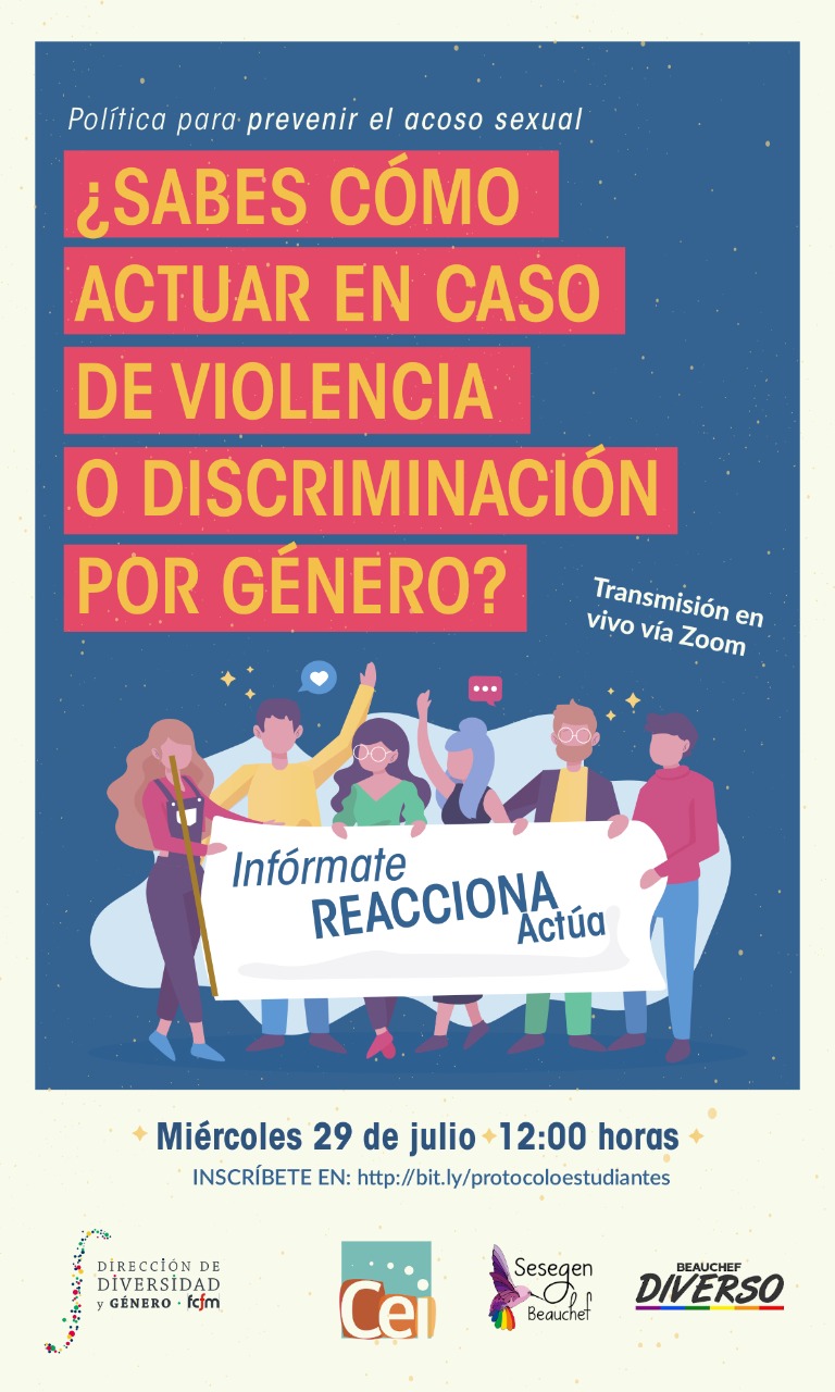 Junto con saludarles, les reiteramos invitación a la actividad "¿Sabes cómo actuar en caso de violencia o discriminación de género?" que se realizará hoy miércoles a las 12:00 horas vía zoom.