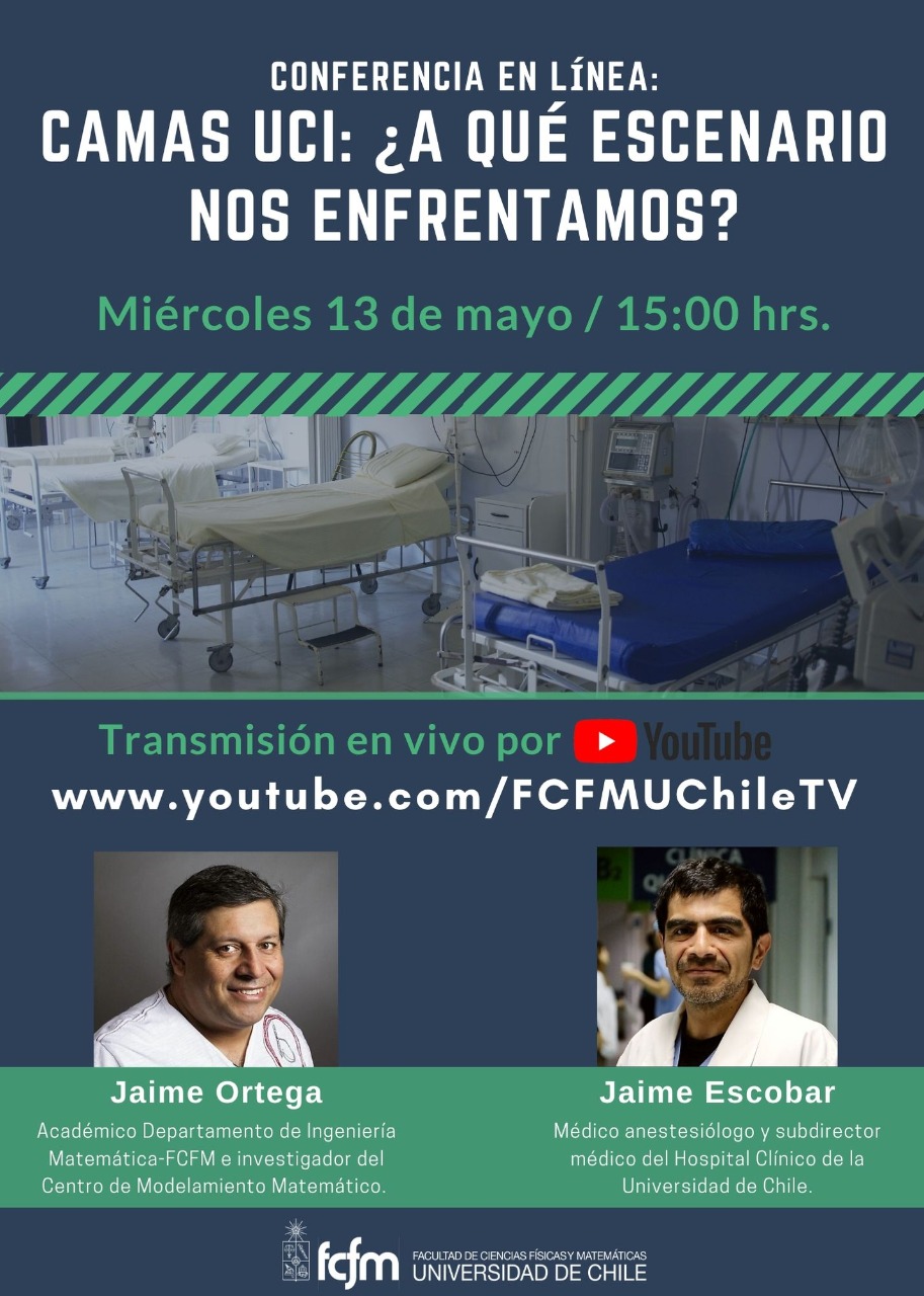 Junto con saludarles, les invitamos a la conferencia en línea "Camas UCI ¿a qué escenario nos enfrentamos?", que se realizará mañana miércoles 13 de mayo a las 15:00 hrs. a través de Youtube: FCFM UChile TV