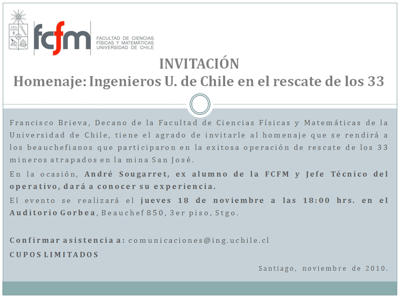Confirmar asistencia a: comunicaciones@ing.uchile.cl