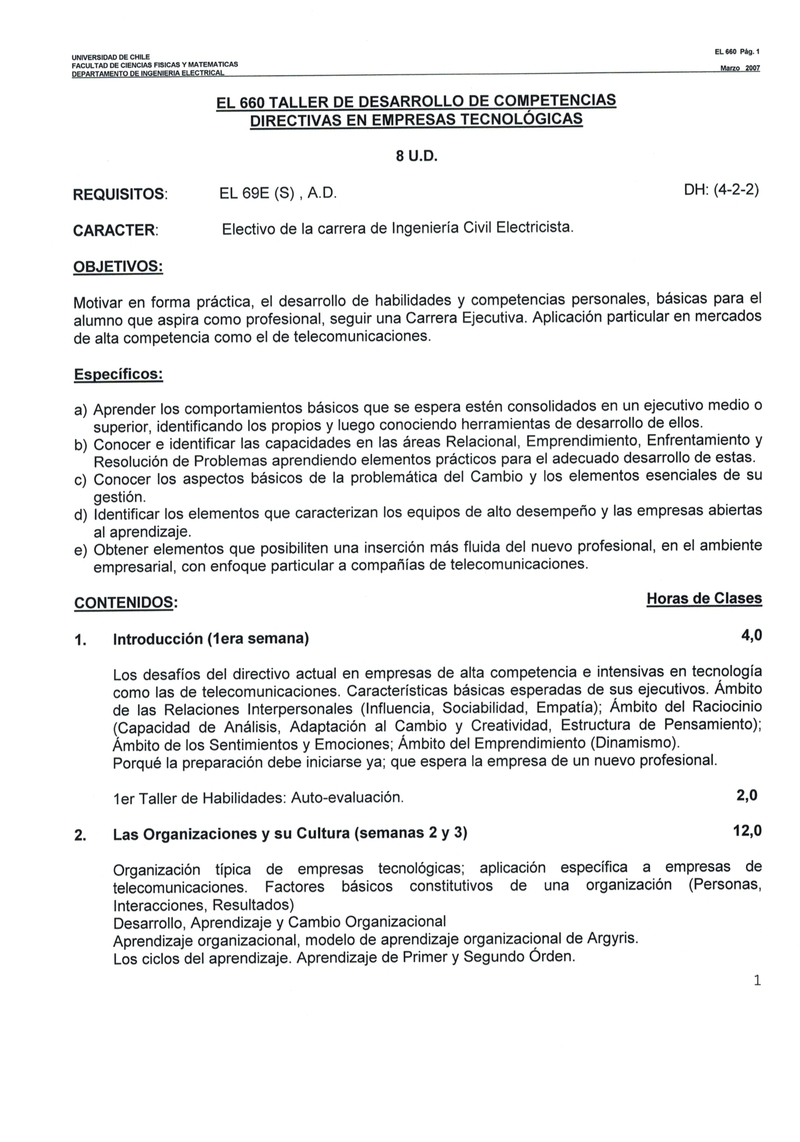 EL660-1 Taller de Desarrollo de Competencias Directivas en Empr. Tecnolog. 2011, Primavera