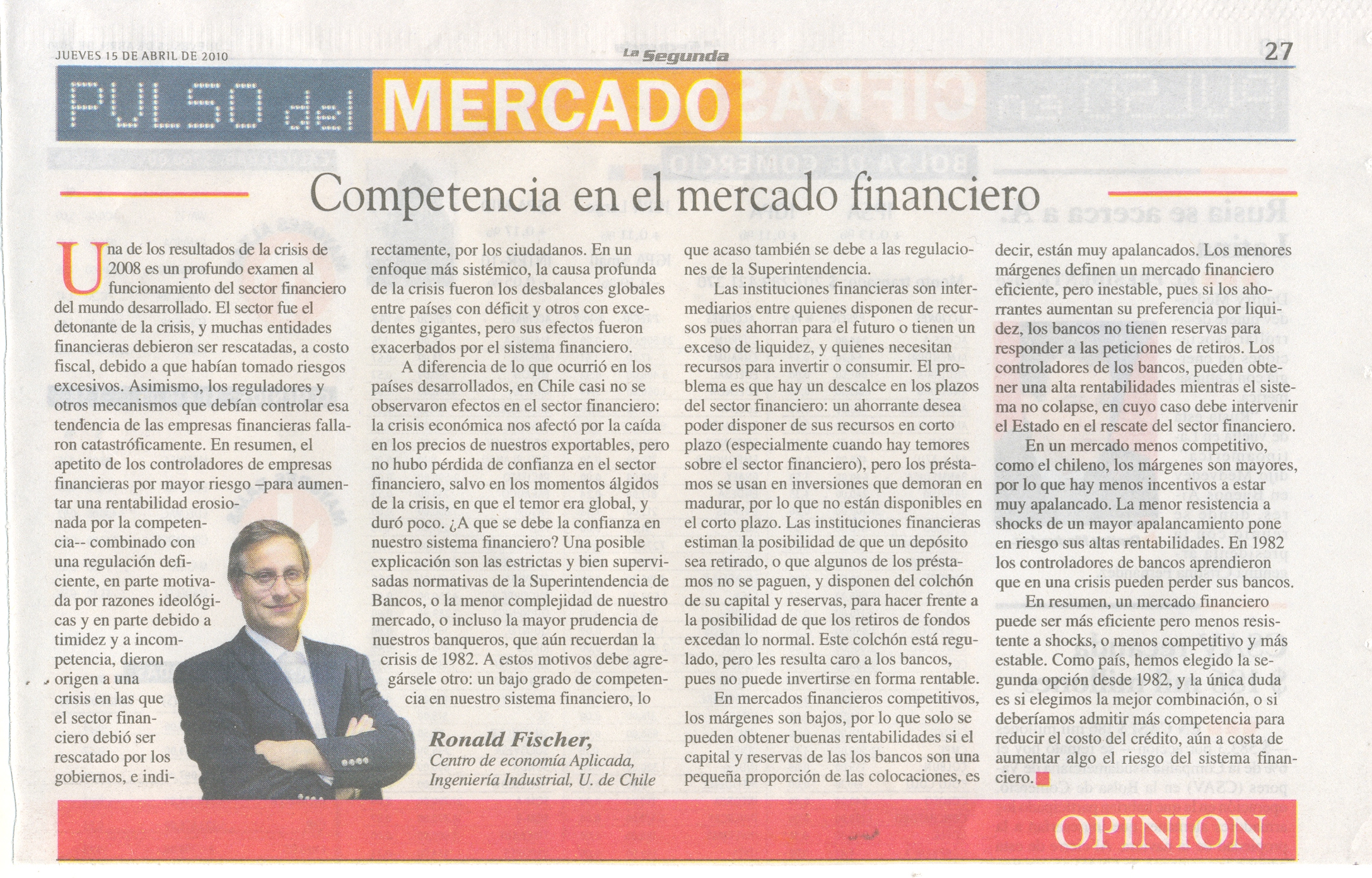 IN5326-1 Economía y Regulación de Bancos 2011, Primavera