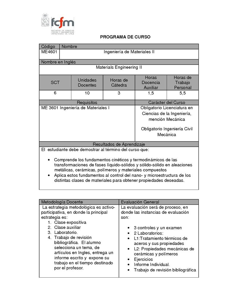 | Programa del Curso | ME4601 2010-2.pdf | |