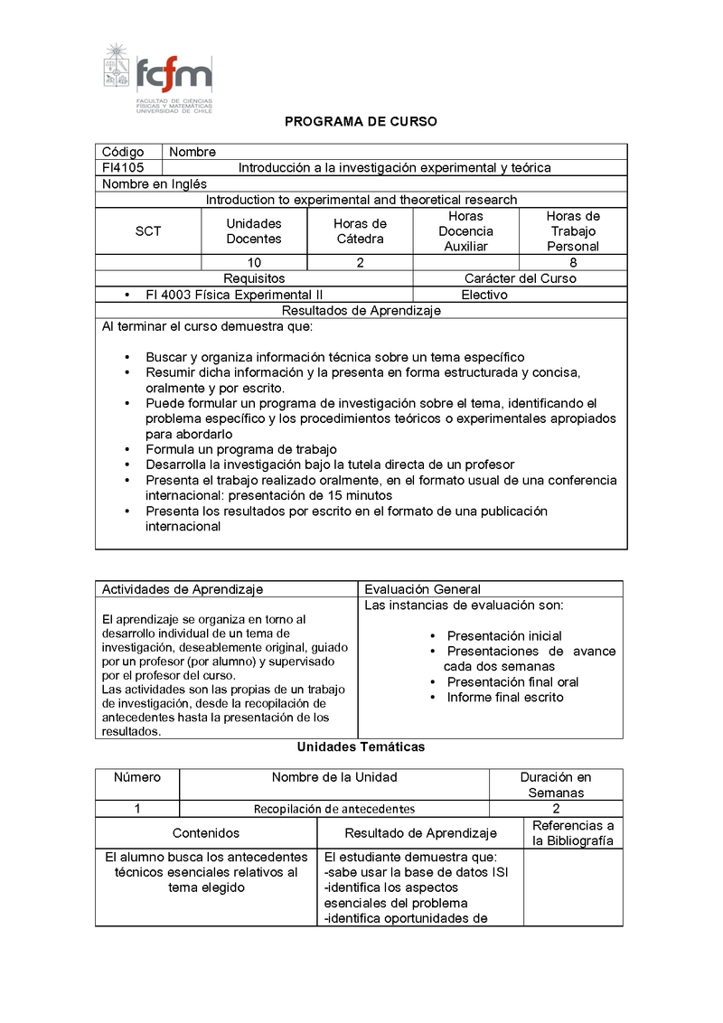 Institución Facultad de Cs. Físicas y Matemáticas Facultad de Cs. Físicas y Matemáticas