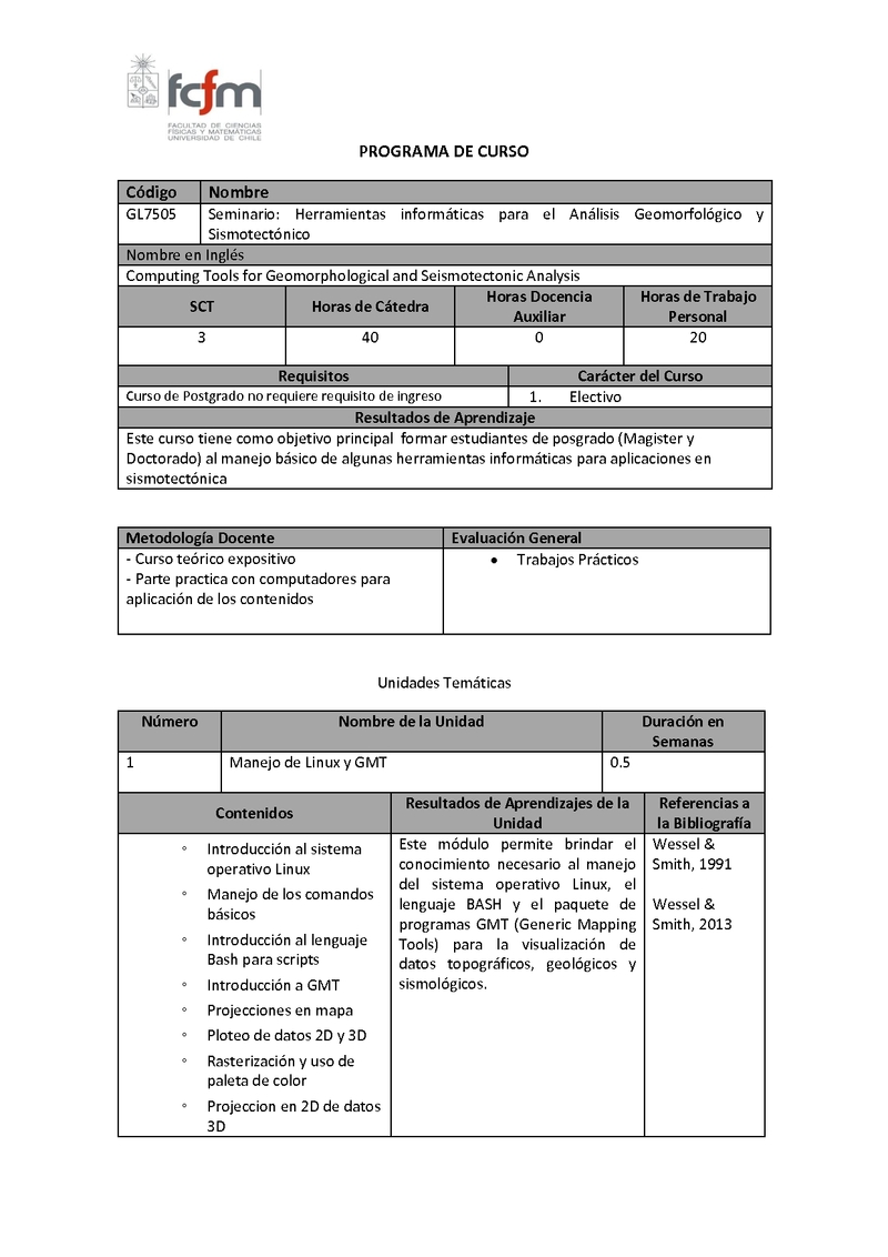 GL7505-1 Seminario: Herramientas Informáticas para el Análisis Geomorfológico y Sismotectónico 2018, Primavera
