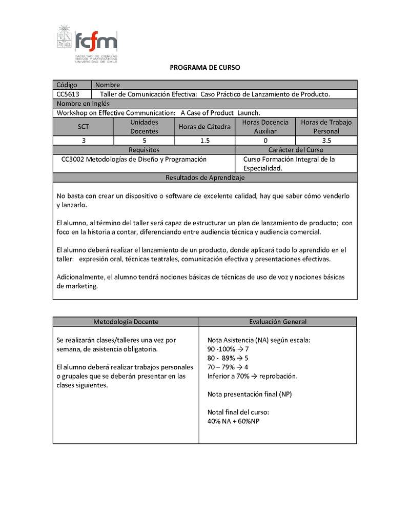 CC5613-1 Taller de Comunicación Efectiva: Caso Práctico de Lanzamiento de Producto 2019, Primavera