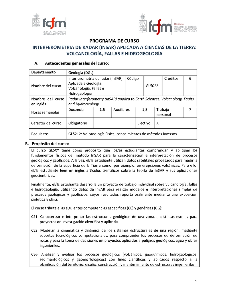 GL5023-1 Interferometría de Radar (INSAR) aplicada a Ciencias de la Tierra: Volcanología, Fallas e Hidrogeología 2023, Primavera
