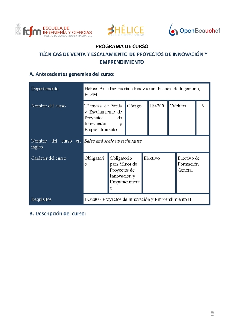 IE4200-1 Técnicas de Venta y Escalamiento de Proyectos de Innovación y Emprendimiento 2024, Primavera