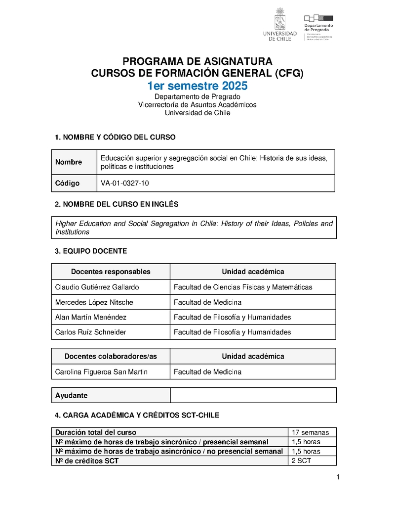 VA-01-0327-10-1 Educación superior y segregación social en Chile: historia de sus ideas, políticas e instituciones 2025, Otoño