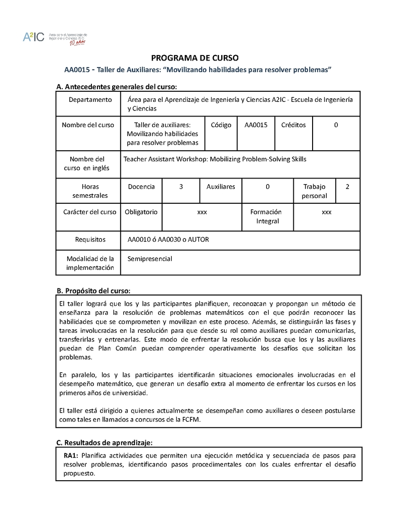 AA0015-1 Taller de Auxiliares Movilizando habilidades para resolver problemas 2025, Primavera