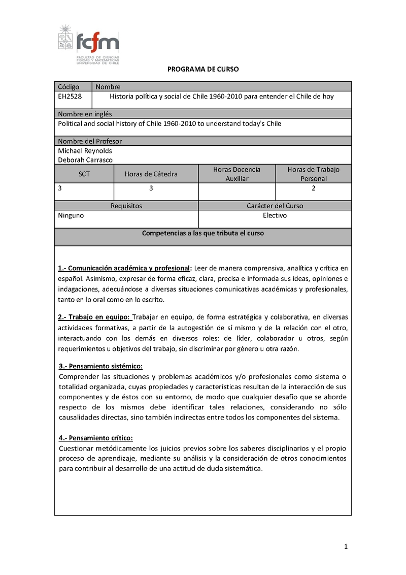 EH2528-1 Historia política y social de Chile 1960-2010 para entender el Chile de hoy 2025, Primavera