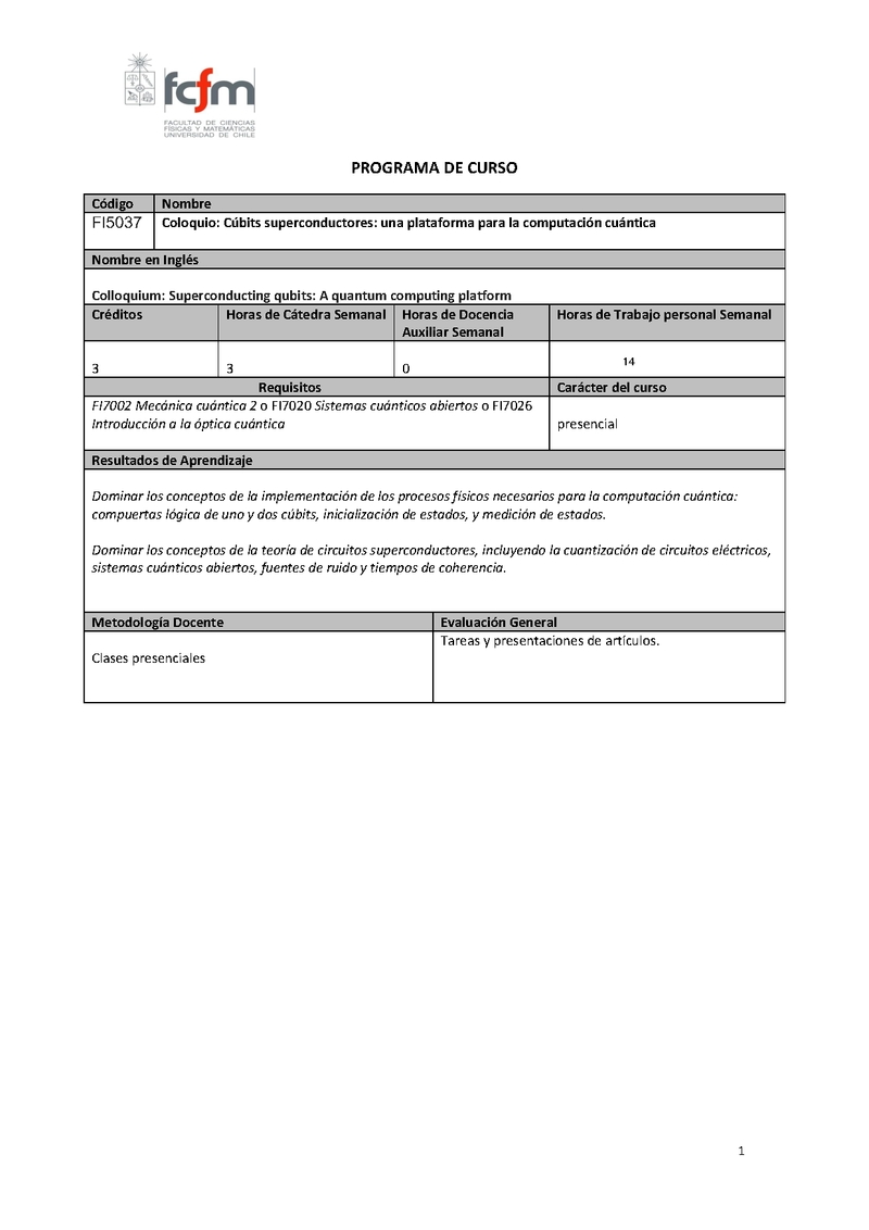 FI5037-1 Coloquio: Cúbits Superconductores: Una Plataforma para la Computación Cuántica 2025, Primavera