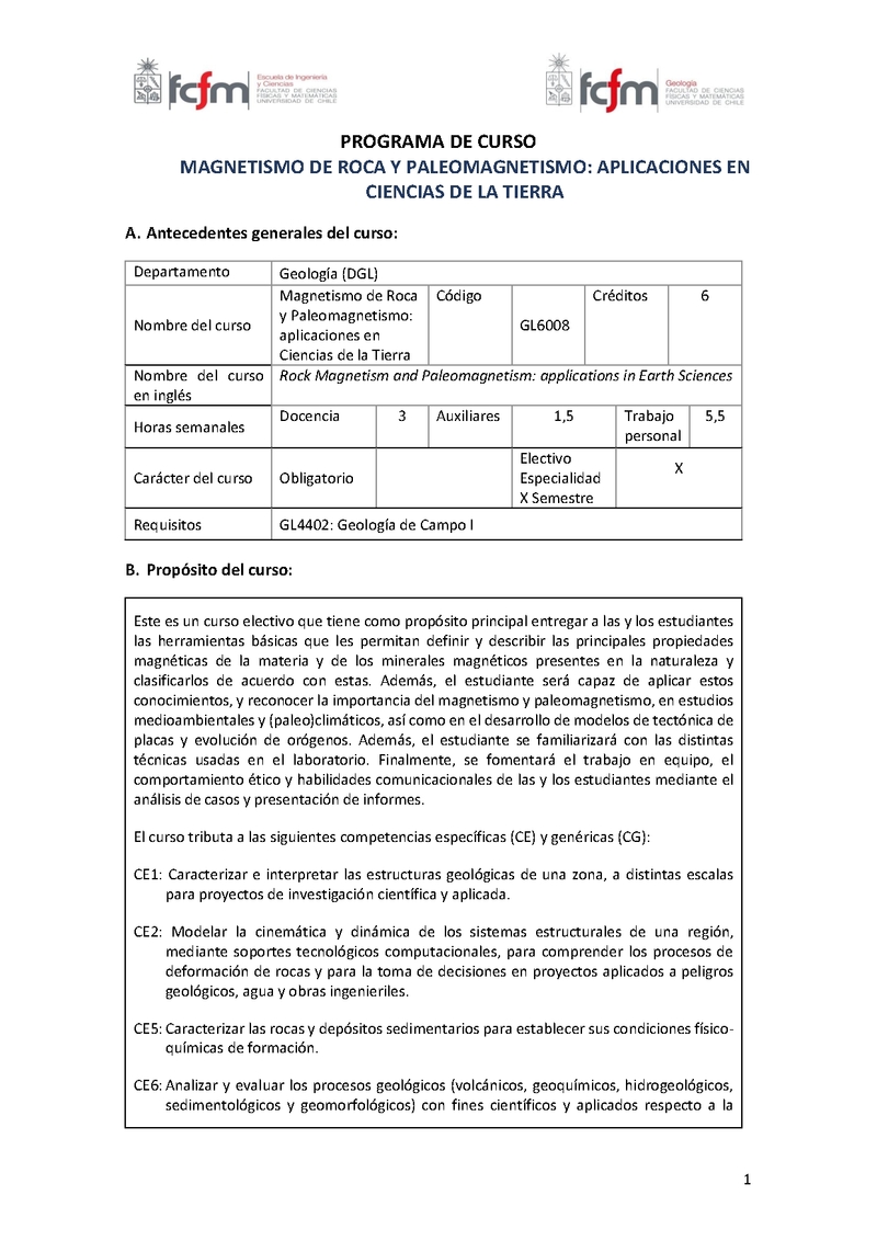 GL6008-1 Magnetismo de Roca y Paleomagnetismo: aplicaciones en Ciencias de la Tierra 2025, Primavera