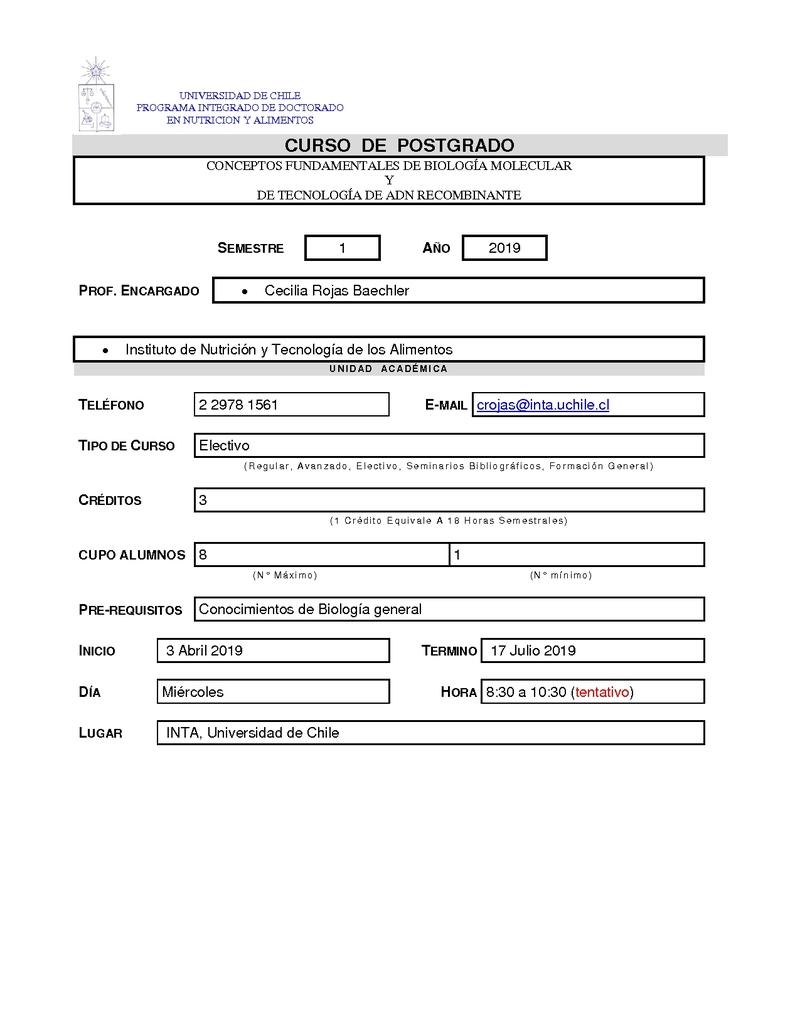 01ELE48-1 Conceptos Fundamentales de Biología Molecular y de Tecnología de ADN Recombinante 2019, Primavera