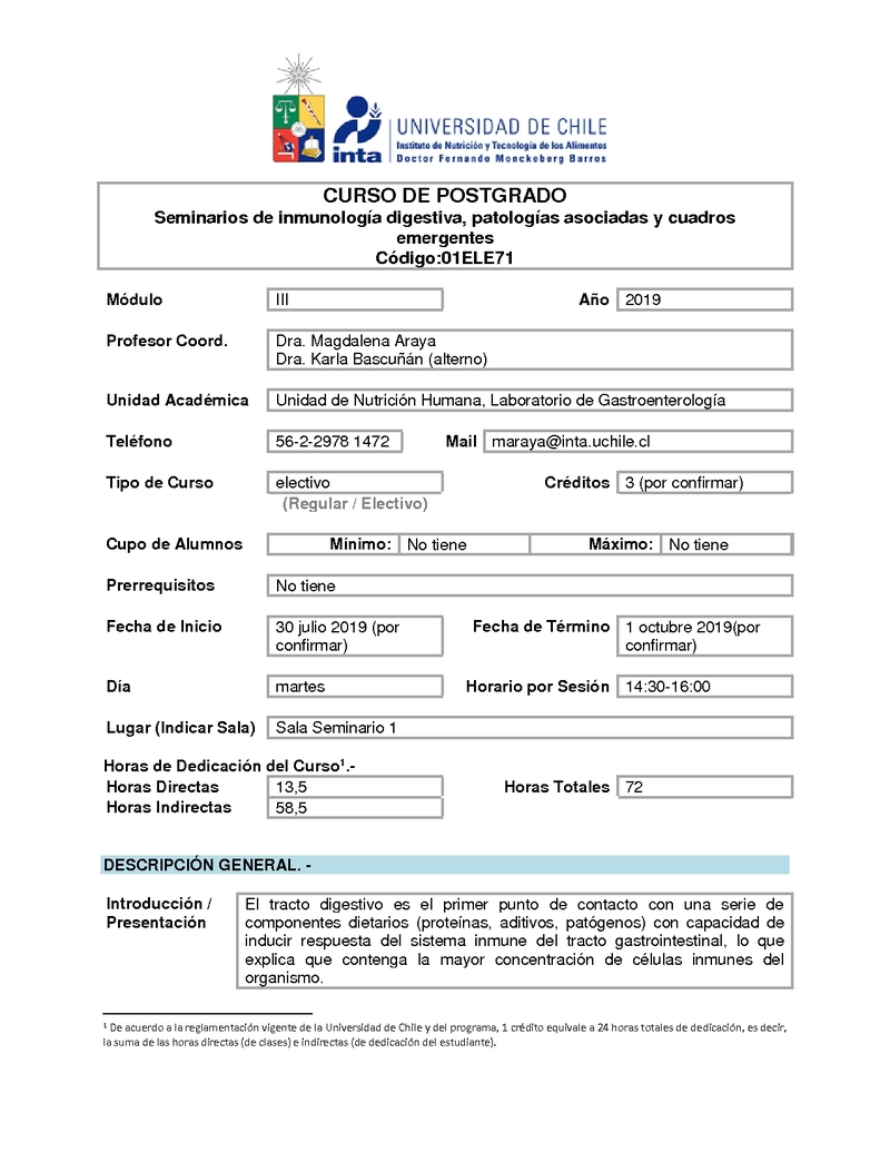 01ELE71-1 Seminarios de inmunología digestiva, patologías asociadas y cuadros emergentes 2019, Primavera