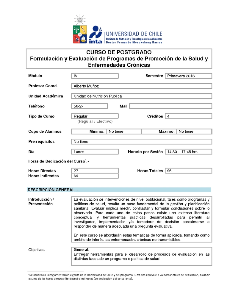 Formulación y Evaluación de Programas de Promoción de la Salud y Enfermedades Crónicas