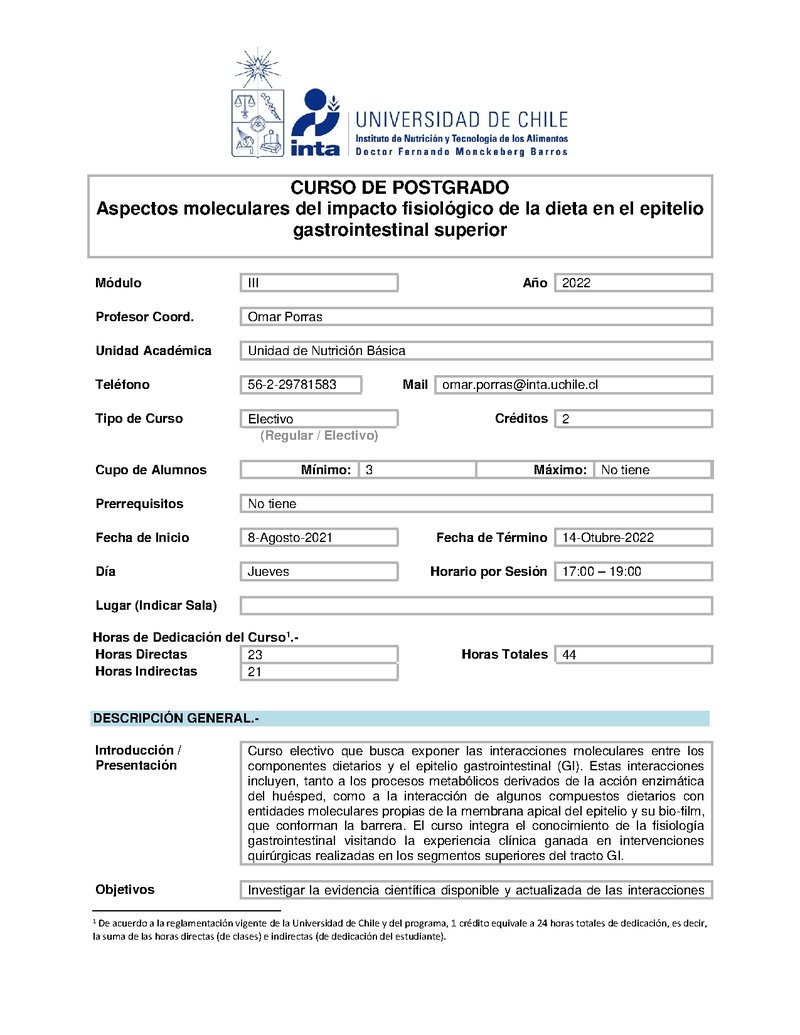 01ELE81-1 Aspectos moleculares del impacto fisiológico de la dieta en el epitelio gastrointestinal superior 2022, Primavera