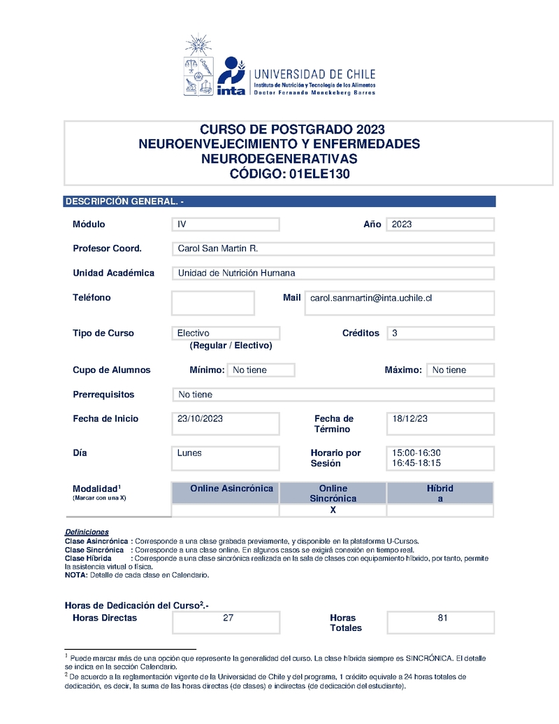 Institución Instituto de Nutrición y Tecnología de los Alimentos Instituto de Nutrición y Tecnología de los Alimentos