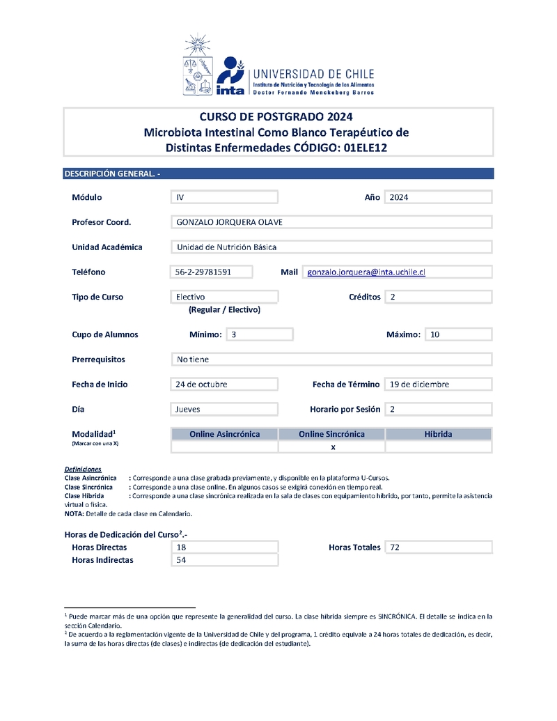 Institución Instituto de Nutrición y Tecnología de los Alimentos Instituto de Nutrición y Tecnología de los Alimentos