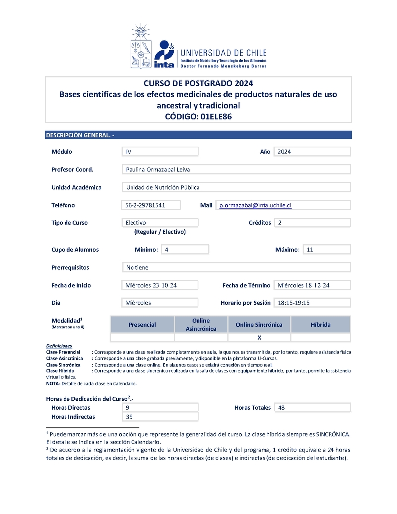 01ELE86-1 Bases científicas de los efectos medicinales de productos naturales de uso ancestral y tradicional 2025, Primavera