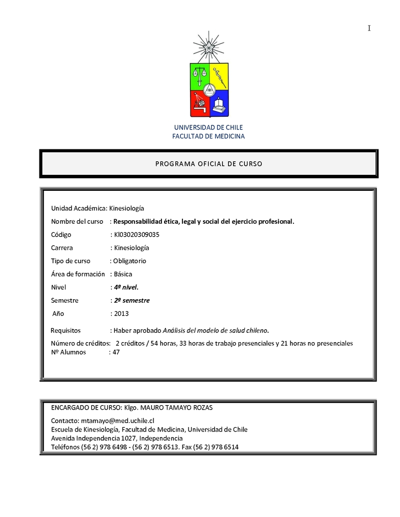 KI03020309035-1 Responsabilidad Etica, Legal y Social del Ejercicio Profesional 2014, Segundo Semestre