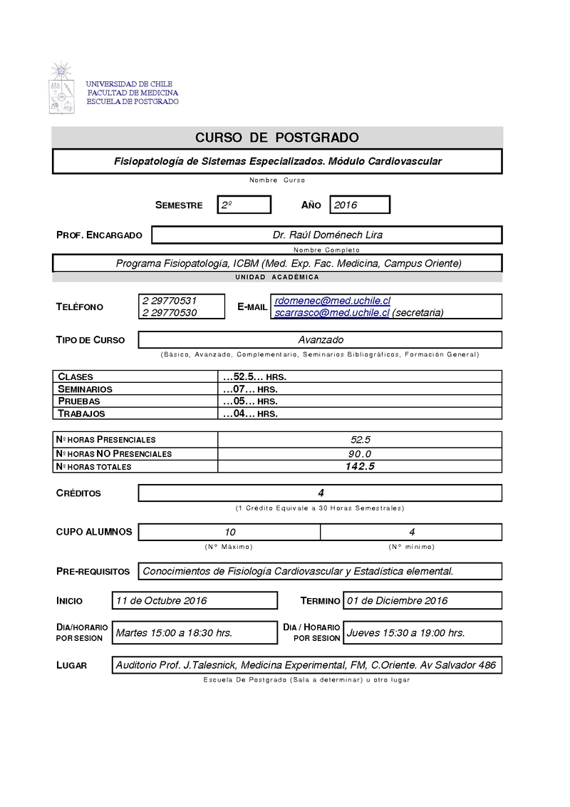 CAFSEMODC-1 Fisiopatología de Sistemas Especializados Módulo Cardiovascular 2016, Segundo Semestre