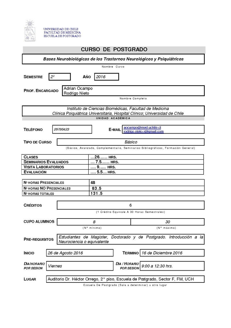 CBBNTNP-1 Bases Neurobiológicas de los Trastornos Neurológicos y Psiquiátricos 2016, Segundo Semestre