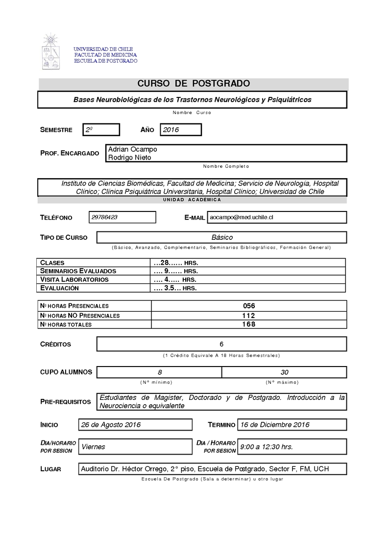 CBBNTNP-1 Bases Neurobiológicas de los Trastornos Neurológicos y Psiquiátricos 2016, Segundo Semestre