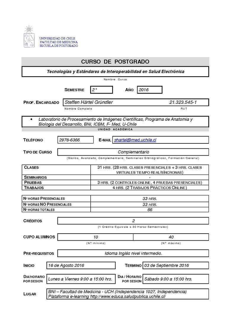CCTEISE-1 Tecnologías y Estándares de Interoperabilidd en Salud Electrónica 2016, Segundo Semestre