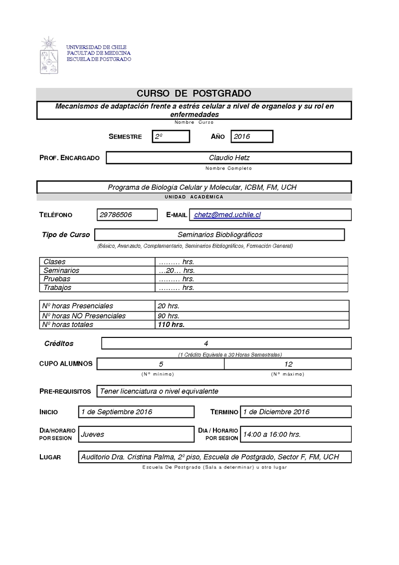 SBMAECRE-1 Mecanismos de Adaptación al Estrés Celular y su Rol en Enfermedades 2016, Segundo Semestre