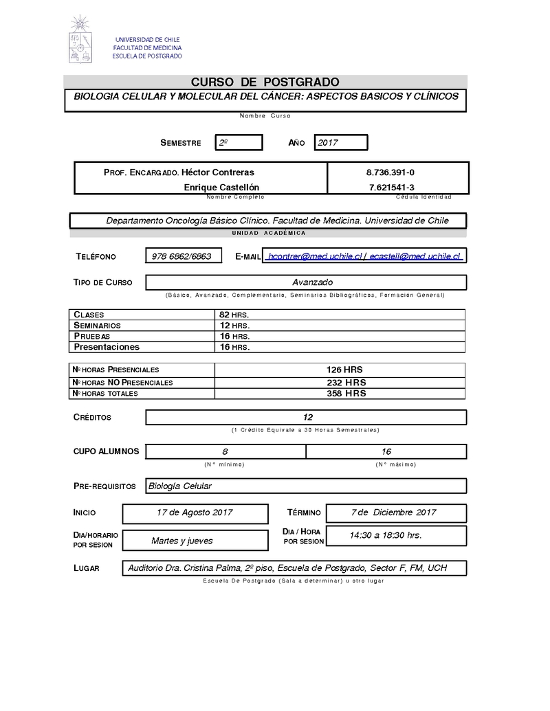 CABCMCABC-1 Biología Celular y Molecular del Cáncer: Aspectos Básicos y Clínicos 2017, Segundo Semestre