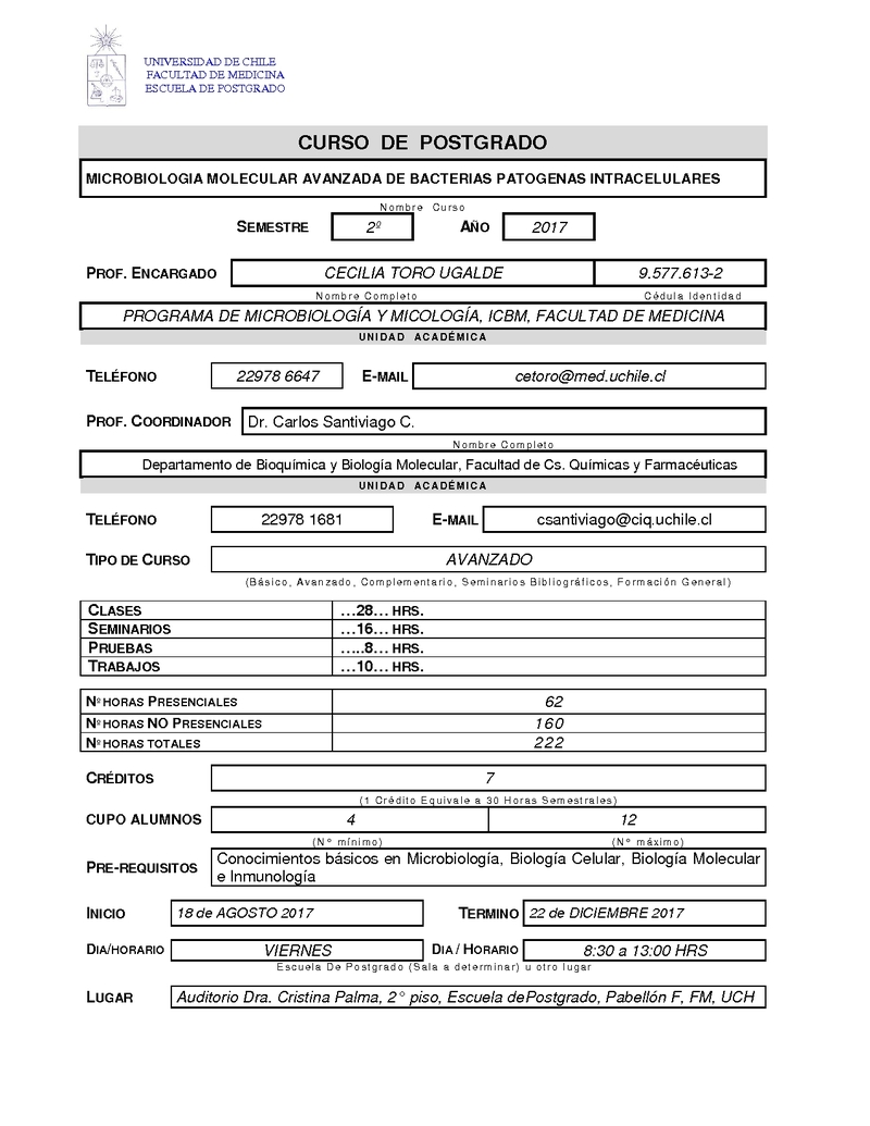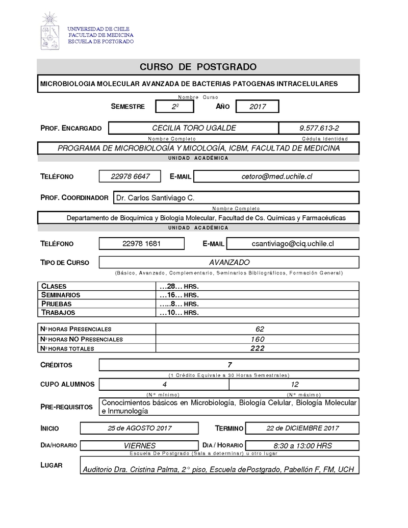 CAMMABPI-1 Microbiología Molecular Avanzada en Bacterias Patógenas Intracelulares 2017, Segundo Semestre