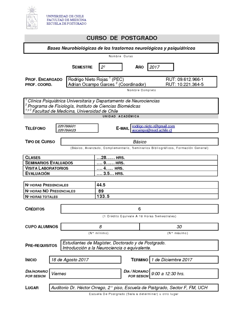 CBBNTNP-1 Bases Neurobiológicas de los Trastornos Neurológicos y Psiquiátricos 2017, Segundo Semestre
