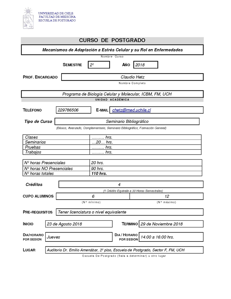 SBMAECRE-1 Mecanismos de Adaptación al Estrés Celular y su Rol en Enfermedades 2018, Segundo Semestre
