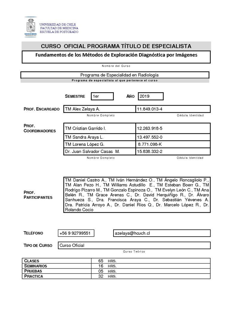 PTERAD001-1 Fundamentos de los Métodos de Exploración Diagnóstica por Imágenes 2020, Primer Semestre