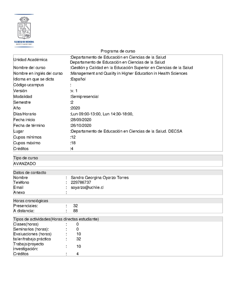 PGAMES036-1 Gestión y calidad en la educación superior en ciencias de la salud 2020, Segundo Semestre