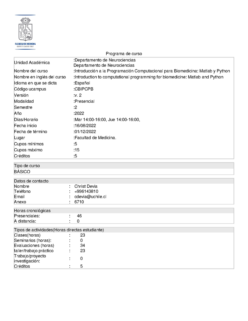 CBIPCPB-1 Introducción a la Programación Computacional para Biomedicina: Matlab y Python 2022, Segundo Semestre