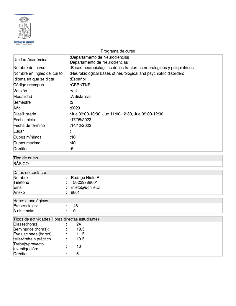 CBBNTNP-1 Bases Neurobiológicas de los Trastornos Neurológicos y Psiquiátricos 2023, Segundo Semestre