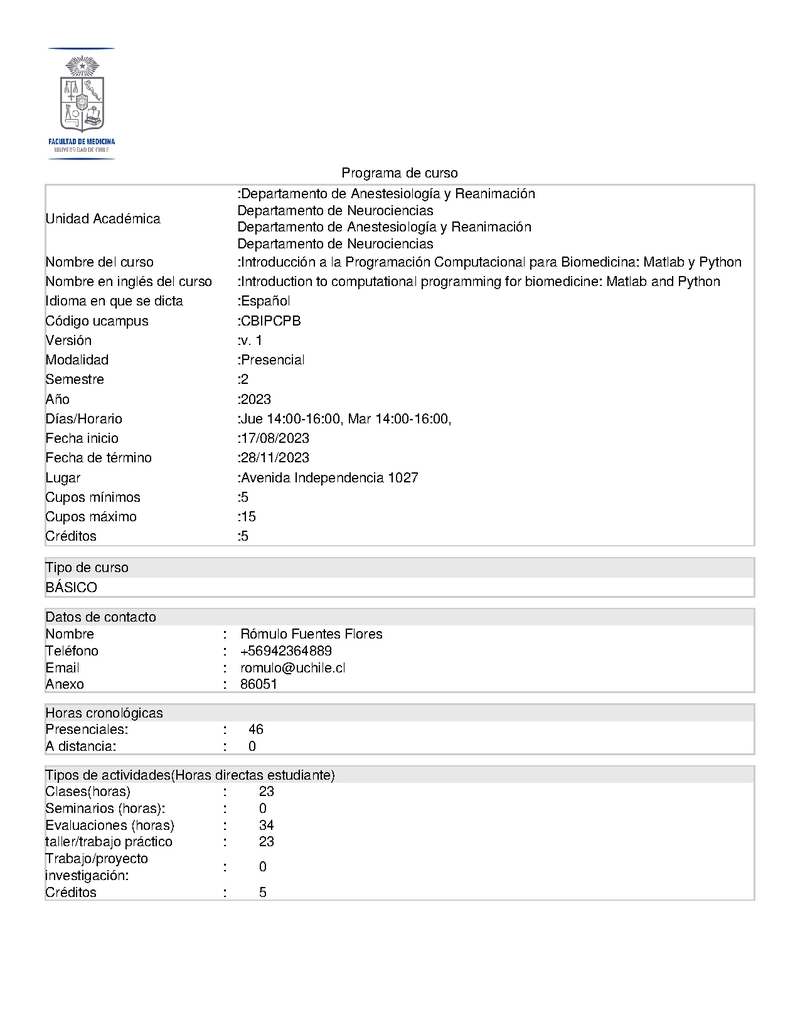 CBIPCPB-1 Introducción a la Programación Computacional para Biomedicina: Matlab y Python 2023, Segundo Semestre