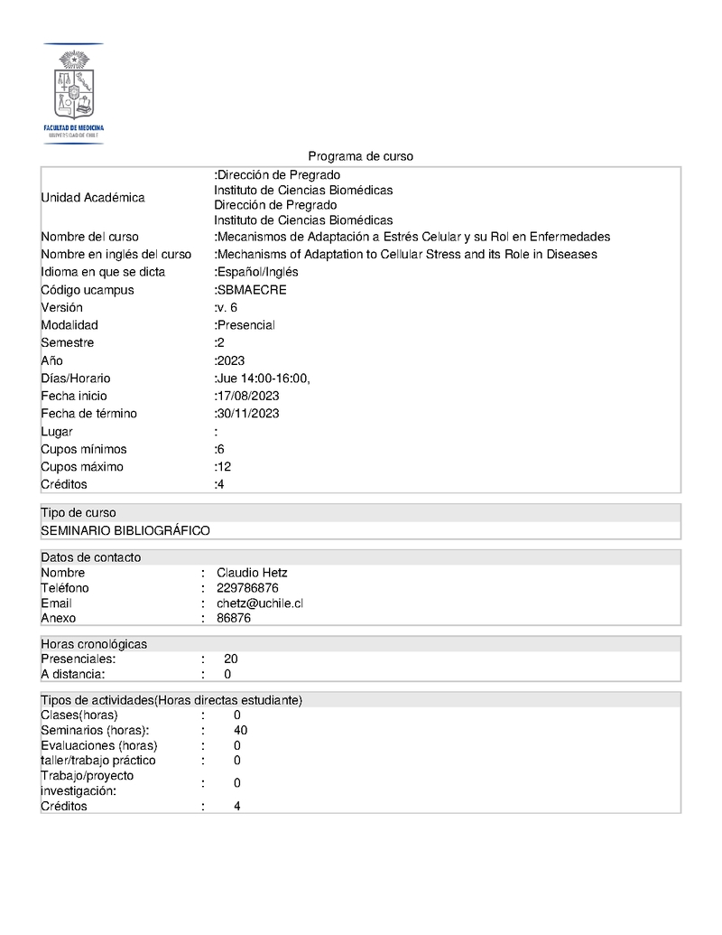 SBMAECRE-1 Mecanismos de Adaptación al Estrés Celular y su Rol en Enfermedades 2023, Segundo Semestre