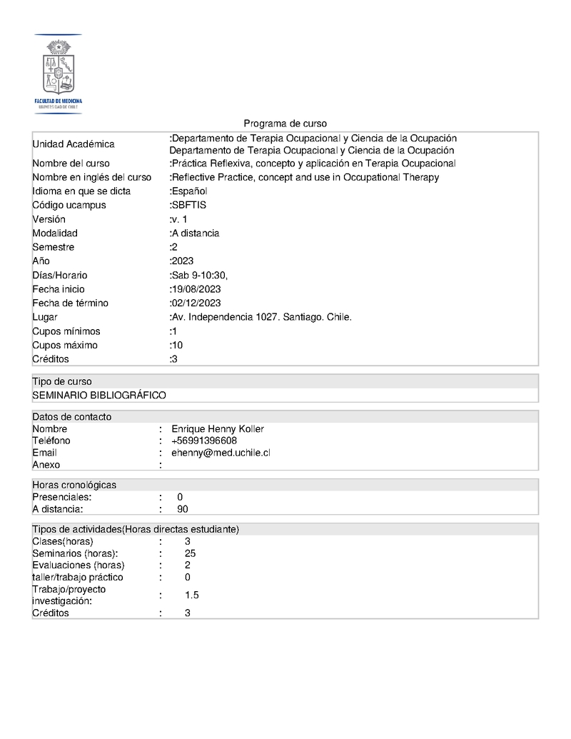 SBPRCATO-1 Práctica Reflexiva, concepto y aplicación en Terapia Ocupacional 2023, Segundo Semestre