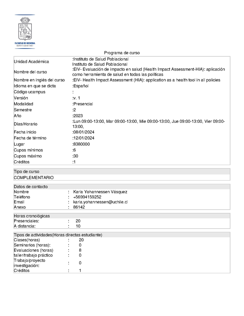 EIVEIS-1 EIV- Evaluación de impacto en salud (Health Impact Assessment-HIA): aplicación como herramienta de salud en todas las políticas 2023, Tercer Semestre