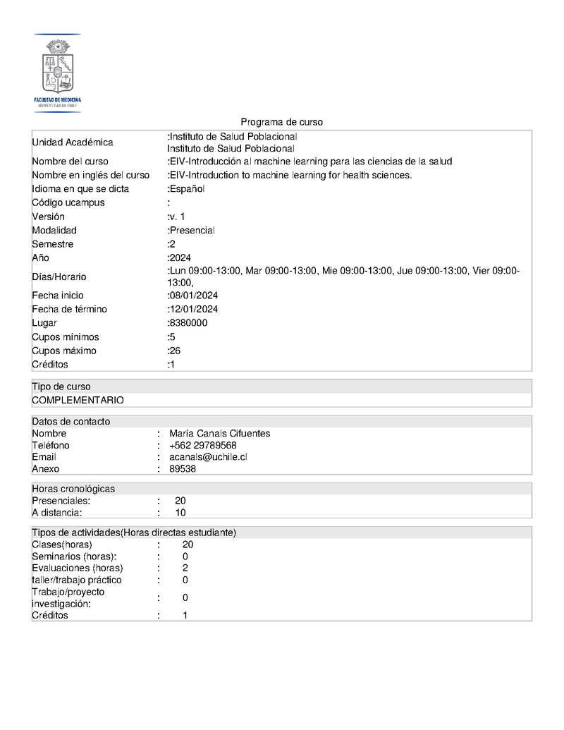 EIVIMLCS-1 EIV-Introducción al machine learning para las ciencias de la salud 2023, Tercer Semestre