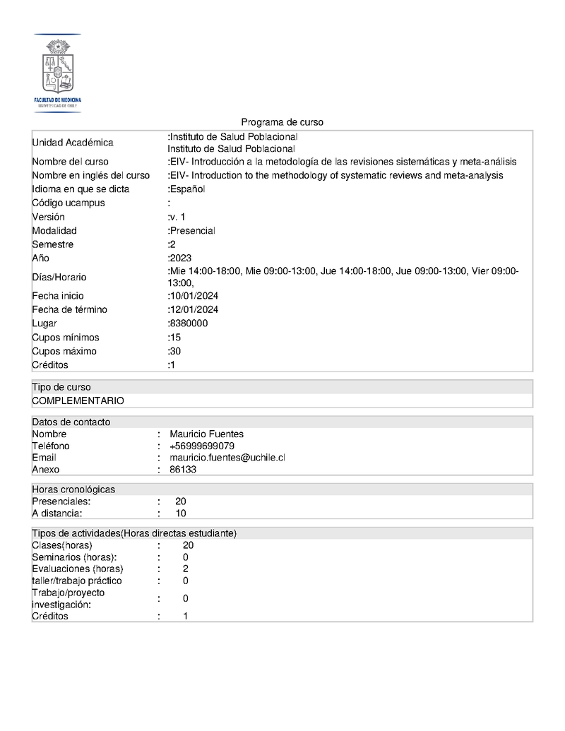 EIVIMM-1 EIV- Introducción a la metodología de las revisiones sistemáticas y meta-análisis 2023, Tercer Semestre