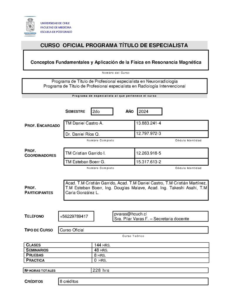 PTENER001-1 Conceptos Fundamentales y Aplicación de la Física en Resonancia Magnética 2024, Anual