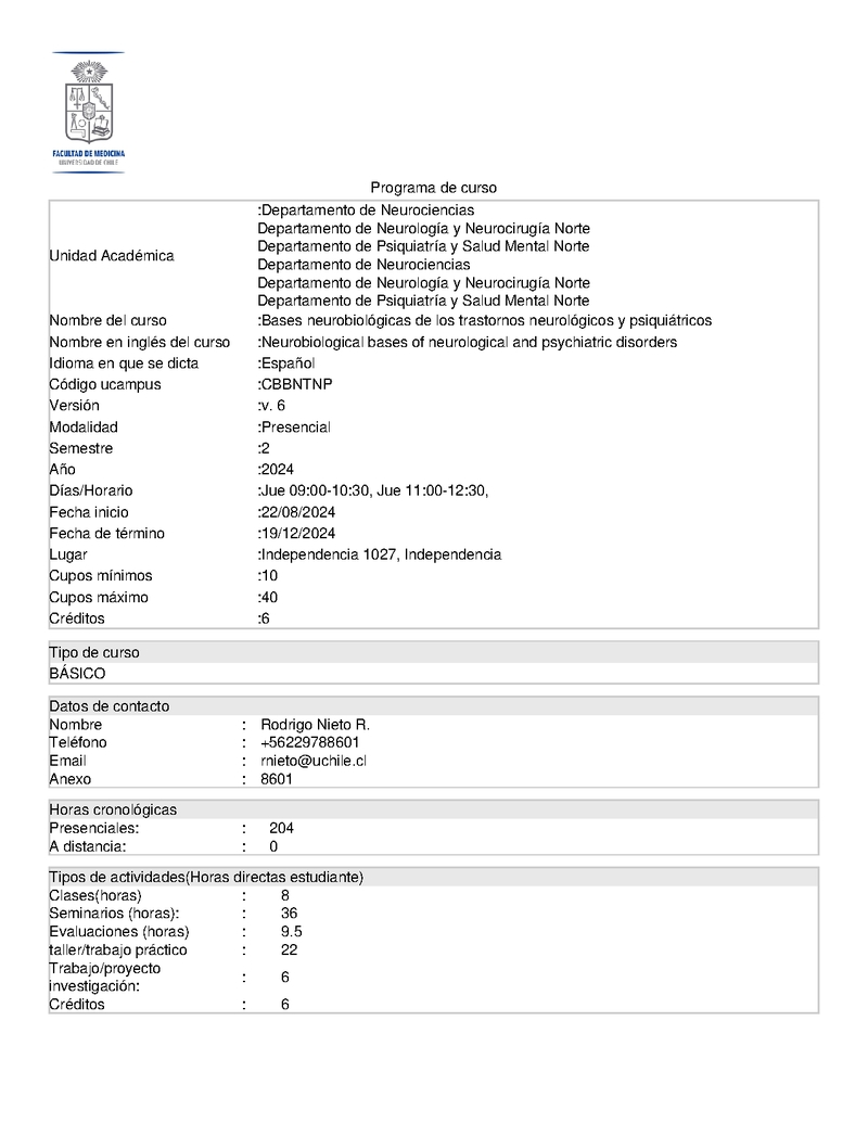 CBBNTNP-1 Bases Neurobiológicas de los Trastornos Neurológicos y Psiquiátricos 2024, Segundo Semestre