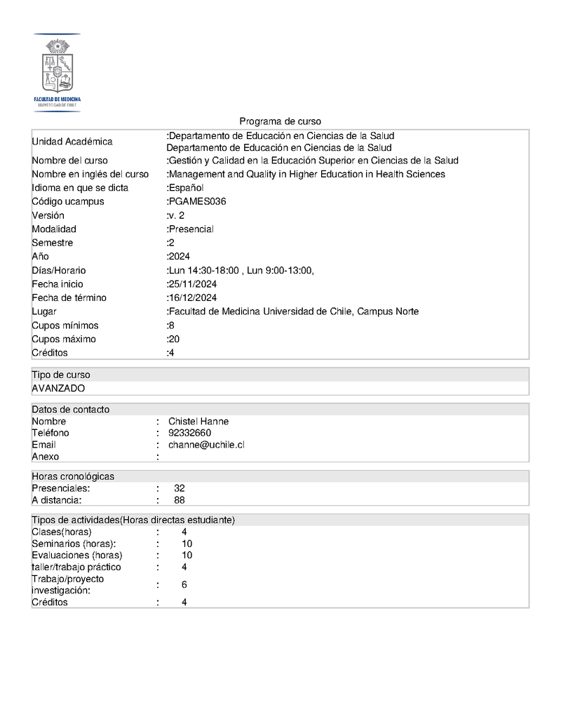 PGAMES036-1 Gestión y calidad en la educación superior en ciencias de la salud 2024, Segundo Semestre